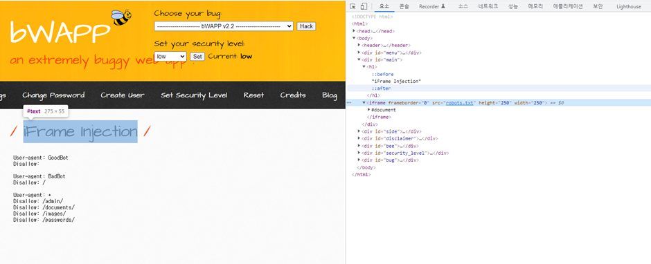따라서 iframe_injection.html이 출력되지 않는 것을 볼 수 있다.