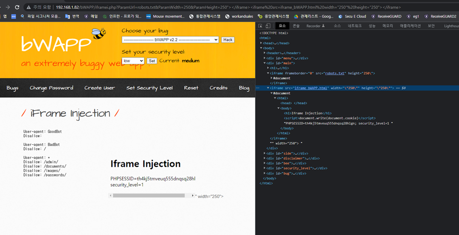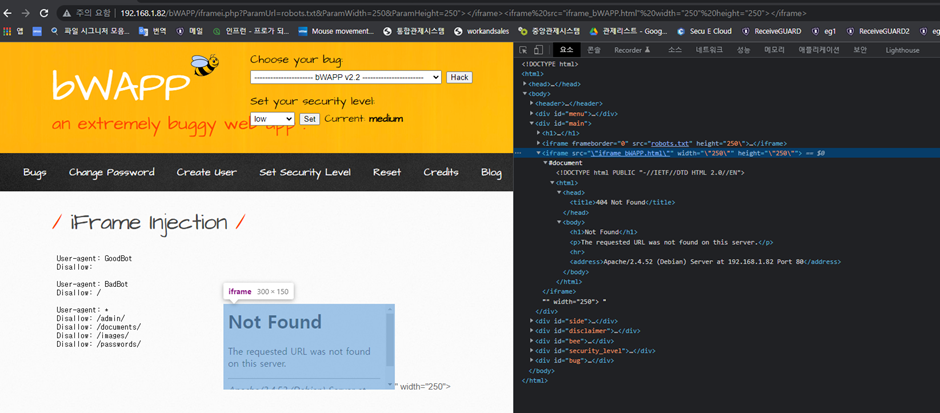 low레벨에서와 마찬가지로 ParamUrl을 조작했을 때, iframe_injection.html이 출력되지 않는 것을 볼 수 있다.