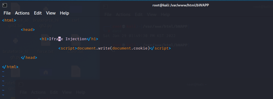 http://192.168.1.82/bWAPP/iframei.php?ParamUrl=robots.txt"></iframe><iframe src="iframe_bWAPP.html"